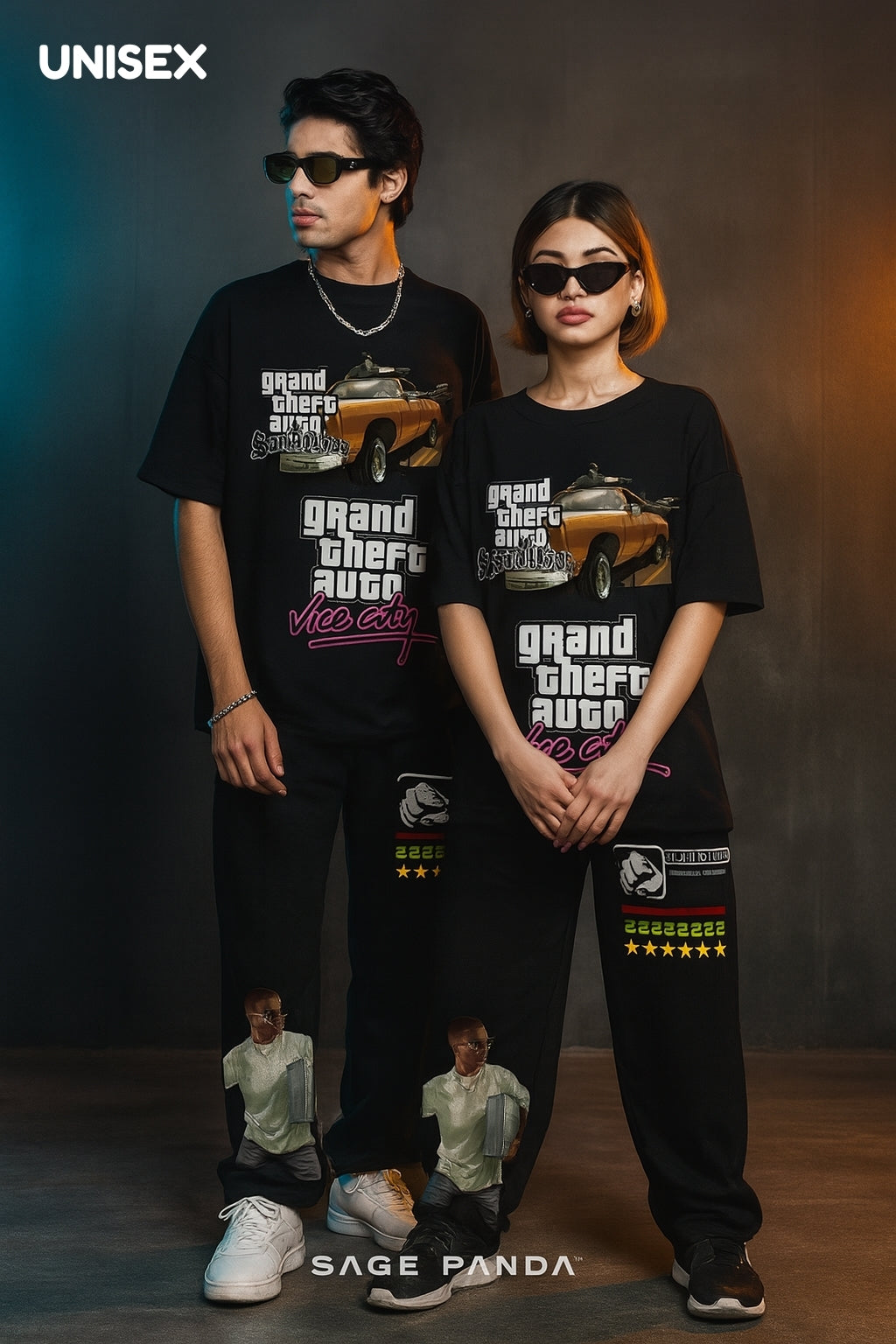 Women Popcorn Oversized Co-Ord Set - Black and Black