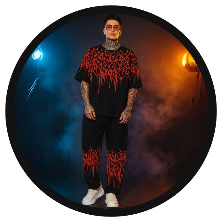 MEN’S STREET CARTOON CORDSET (RED AND BLACK)