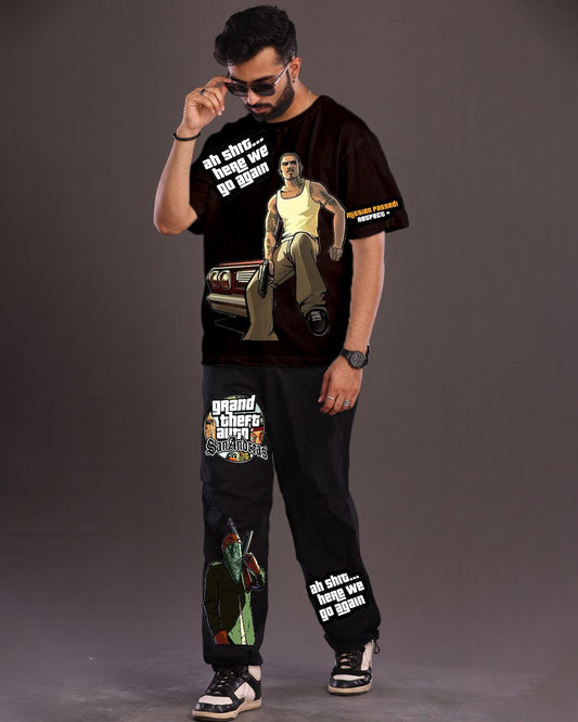 Men's Joker Graphic Oversized Co-ord Set Black and Black(*)