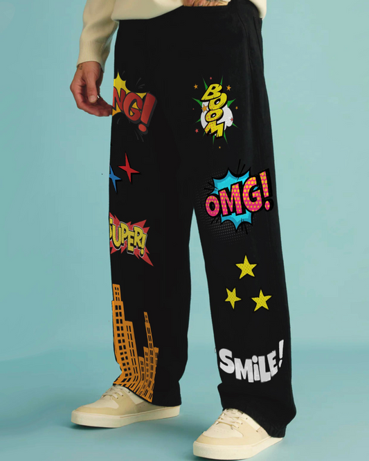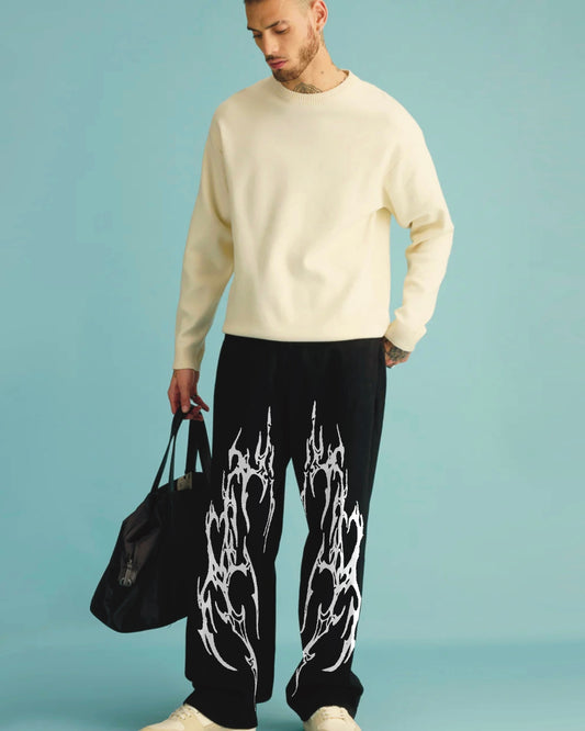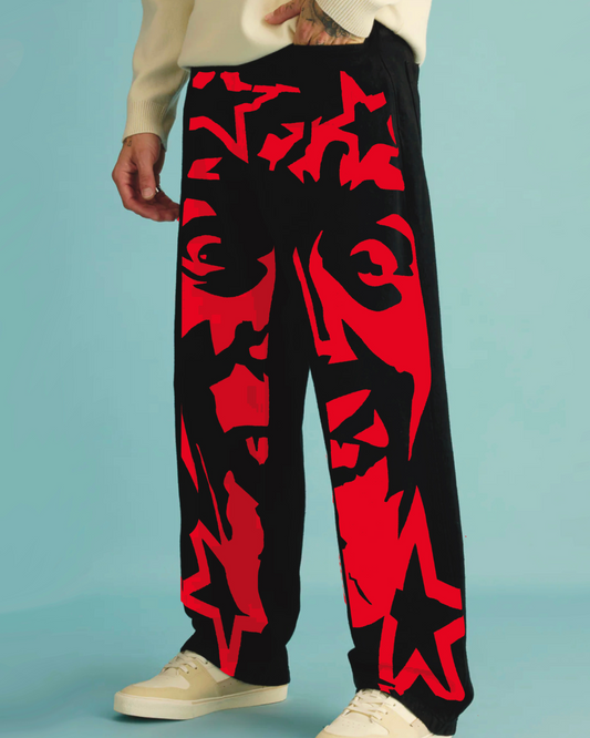 MEN'S DESIGNER BLACK COTTON PANT - FIRE SPARK