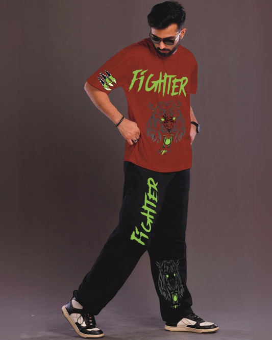 Men's Red and Olive Coords Oversized Set with Money Man Theme