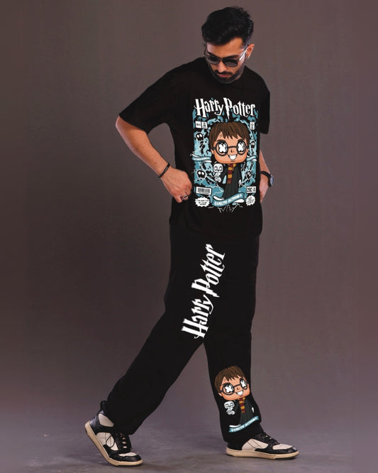 Young Harry Potter Men's Oversized Black and Black Coord Set