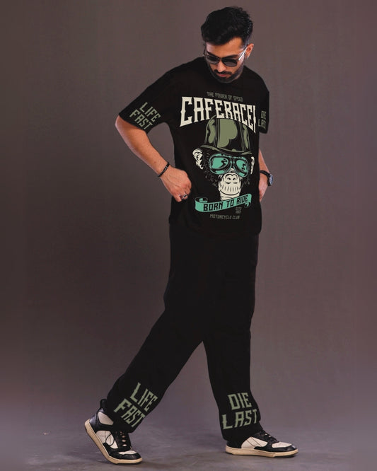 CafeRacer Men's Oversized Black and Black Coord Set(*)