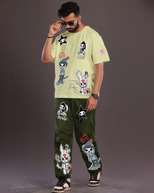 Bro Code: Men's Coords Oversized Set in Mint Green and Olive