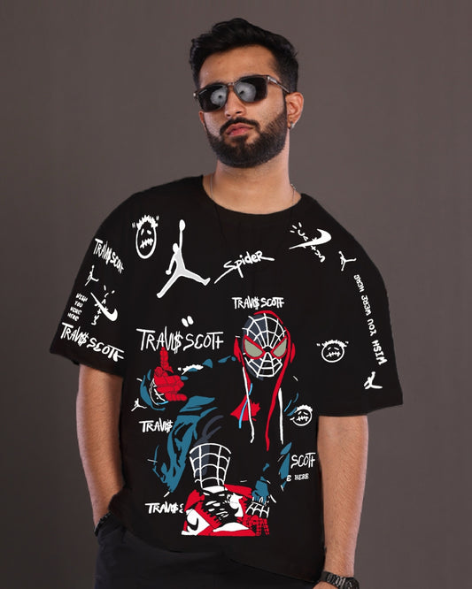 Pack of 2 Men's Anime Oversized T-Shirt: Spidy & Naruto