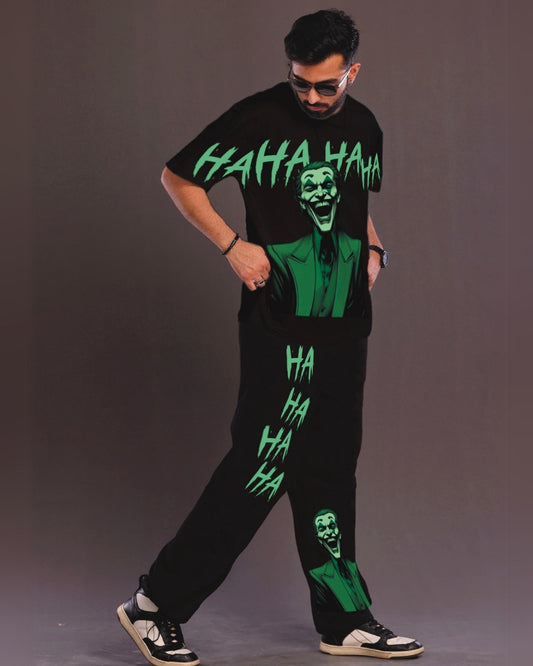 Happy Joker Men's Oversized Black and Black Coord Set(*)