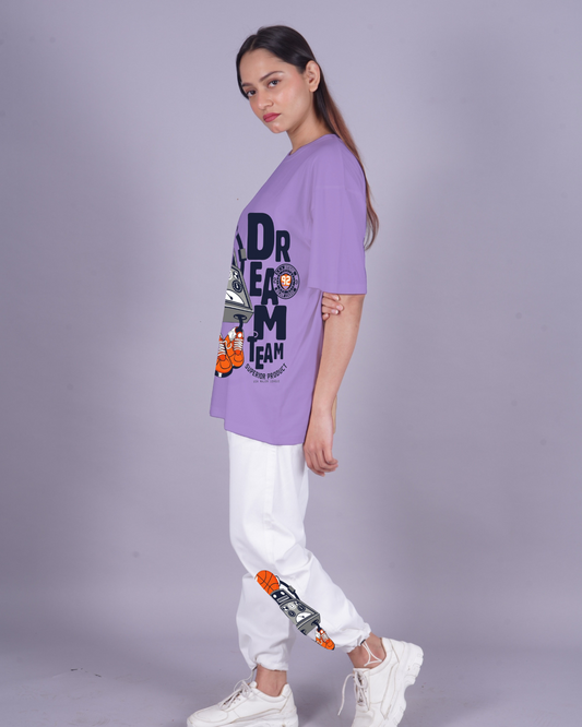 Women Dream Team Oversized Co-Ord Set - Purple and White