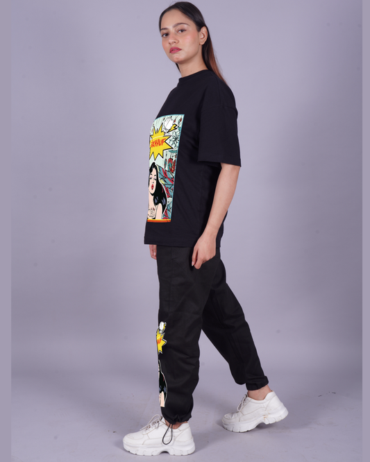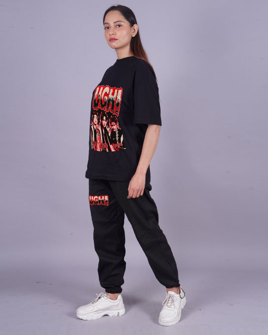 Women BTS UGH! Oversized Co-Ord Set - Black and Black
