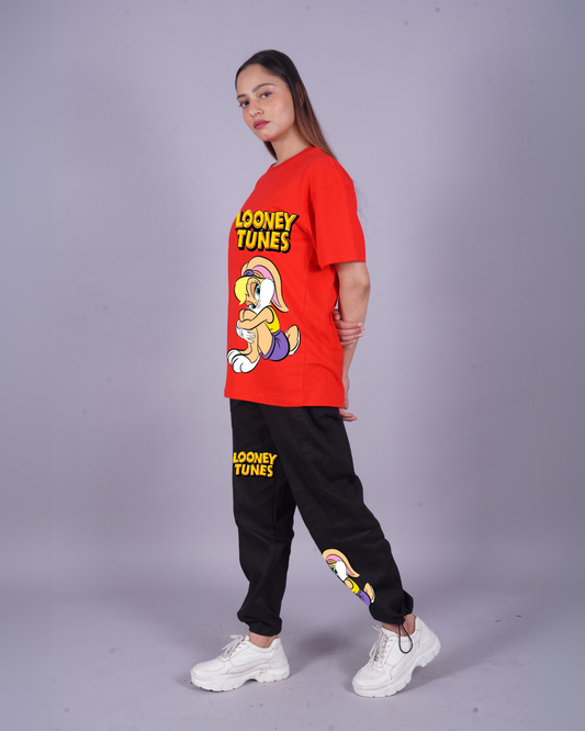 Women Looney Tunes Oversized Co-Ord Set - Red and Black