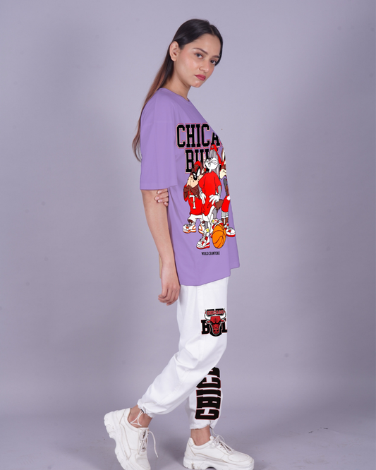 Women Chicago Bulls Oversized Co-Ord Set - Purple and White