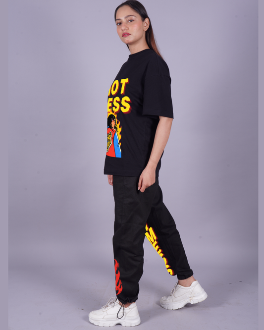Women Hot Mess Oversized Co-Ord Set - Black and Black