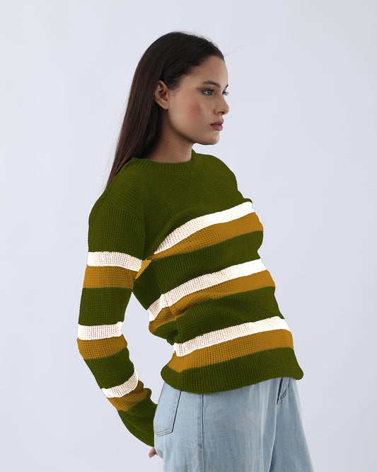 Premium Long Sleeve Crew Neck Pullovers - Bottle Green Striped