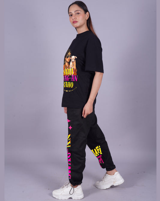 Women Sada Swag Oversized Co-Ord Set - Black and Black