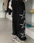 BLACK ADJUSTABLE CARGO PANTS FOR WOMEN - STARS