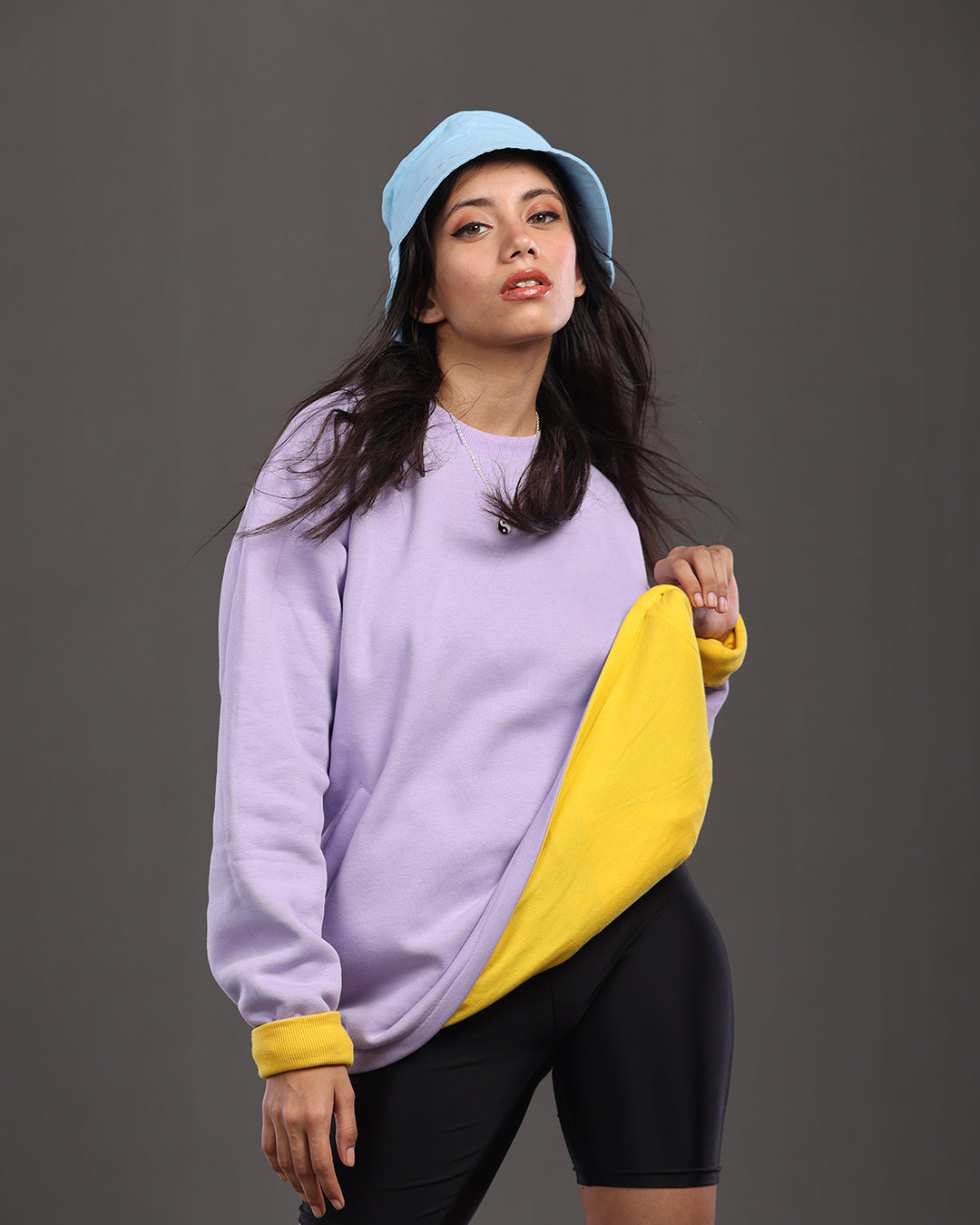 Two Looks, One Sweatshirt - Lilac & Sunflower Yellow Oversized Fit