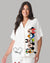 MOUSE FAMILY WOMEN HALF SLEEVE WHITE OVERSIZED KNITTED SHIRT