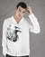 EAGLE THEME FULL SLEEVE WHITE OVERSIZED KNITTED SHIRT(*)