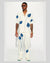 HALF SLEEVE BLUE FLORAL OVERSIZED KNITTED SHIRT CORD SET - WHITE AND WHITE