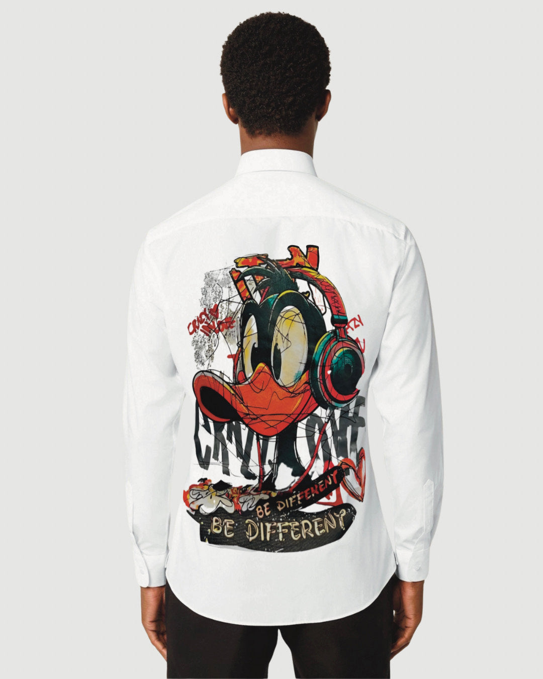 IT'S CRAZY LOVE DUCK FULL SLEEVE WHITE OVERSIZED KNITTED SHIRT