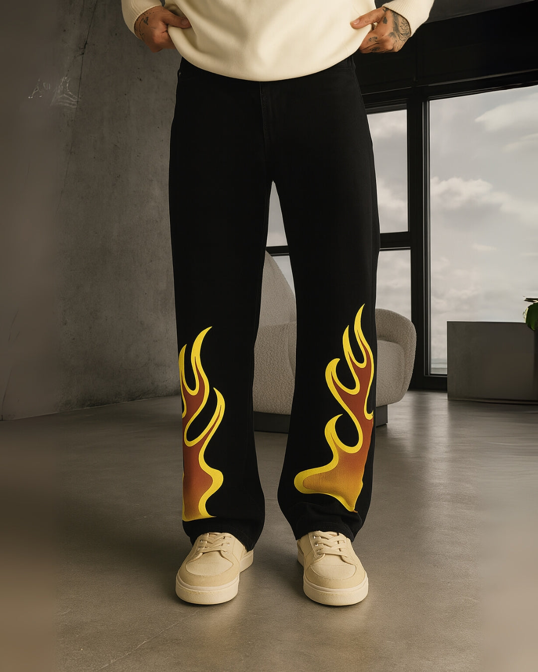 MEN'S BLACK ULTRASOFT COTTON PANT - FIRE AURA(*)