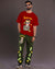 Men's Red and Olive Coords Oversized Set with Money Man Theme