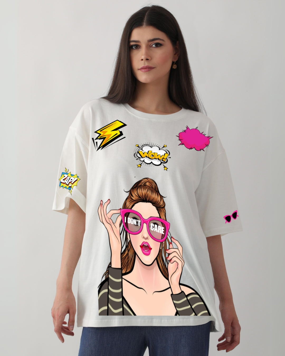 Pack of 2 Women's Oversized Tees - Wow Vibe & I Don't Care Graphic