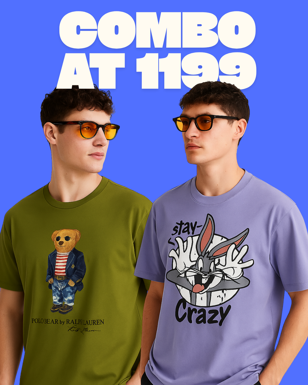 POLO BEAR (OLIVE), STAY CRAZY (PURPLE) TEE COMBO OF 2(*)