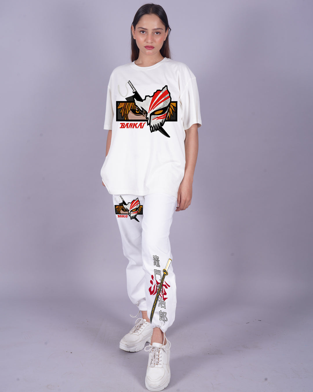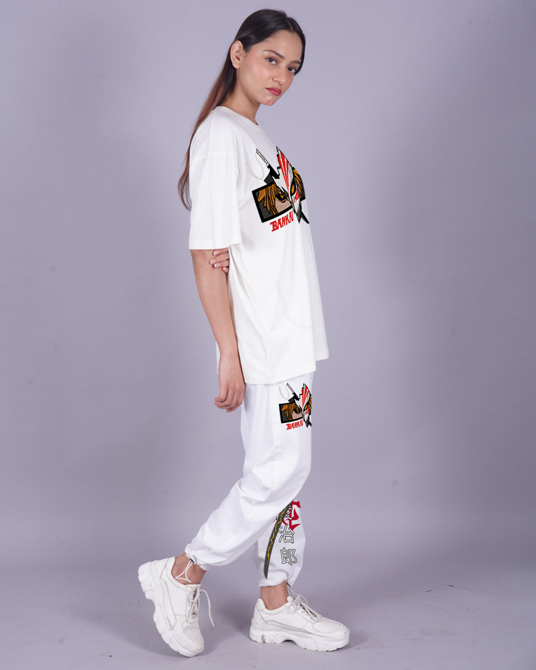 Women Bankai Oversized Co-Ord Set - White and White