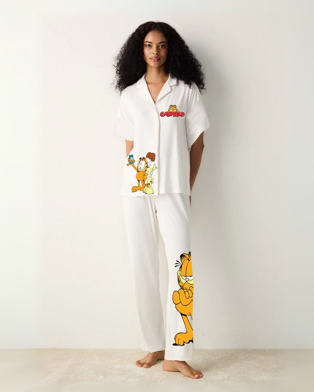 WOMEN CARFIELD HALF SLEEVE OVERSIZED KNITTED SHIRT CORD SET - WHITE AND WHITE