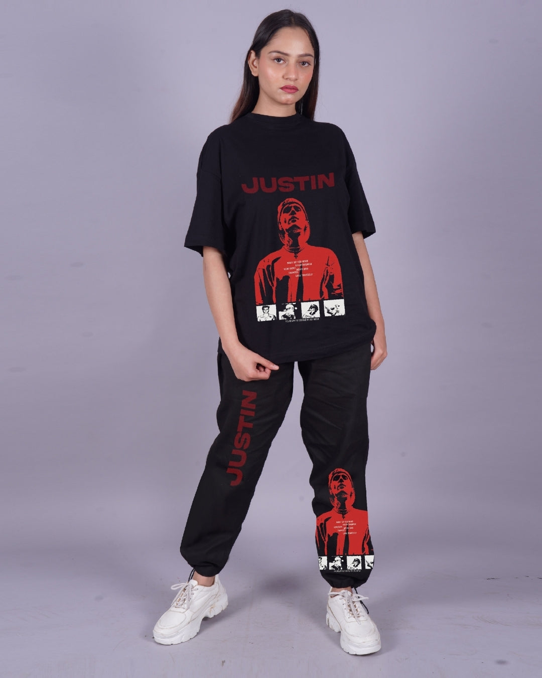 Women Justin Bieber Heart Breaker Oversized Co-Ord Set - Black and Black