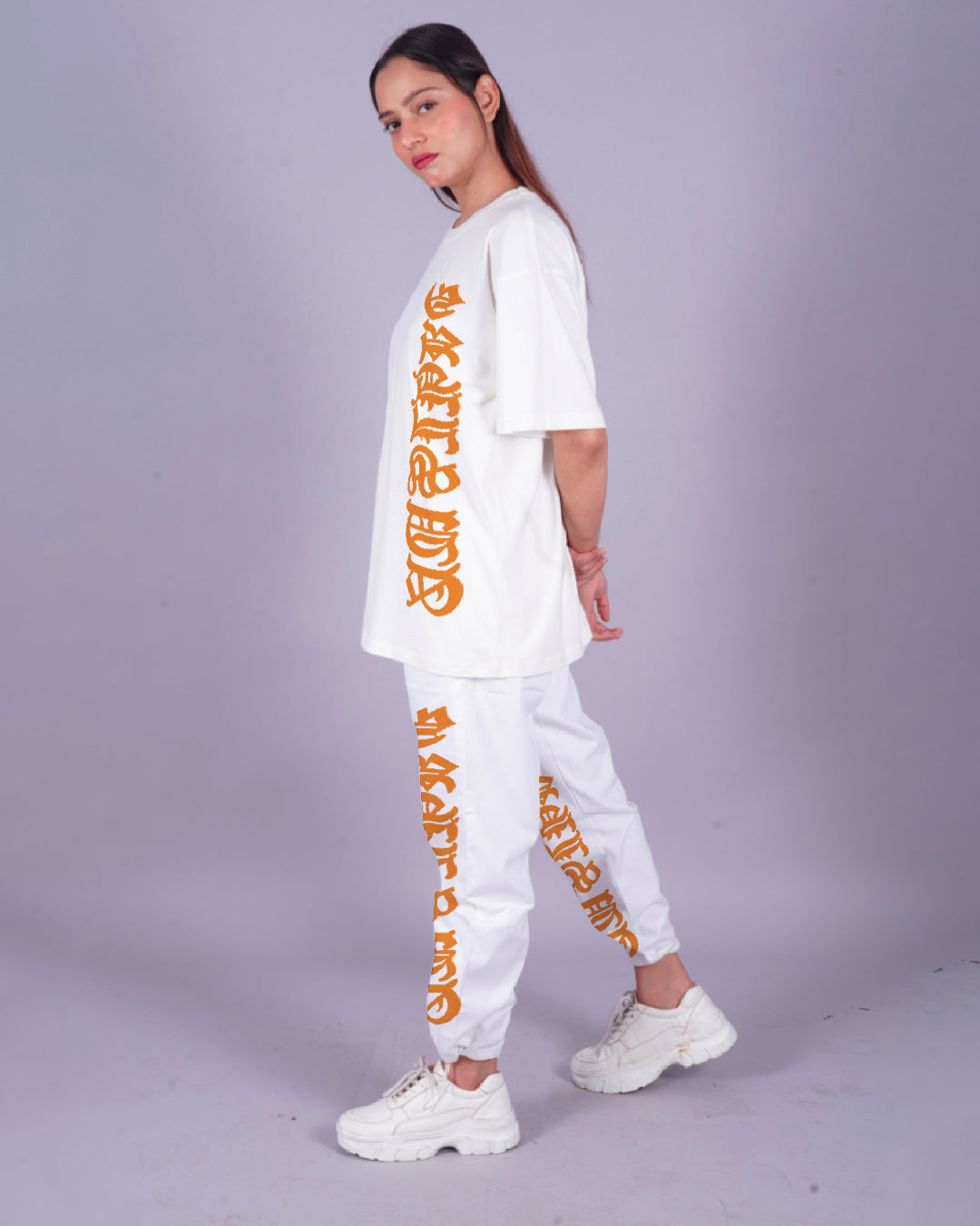 Women Letterman Oversized Co-Ord Set - White and White