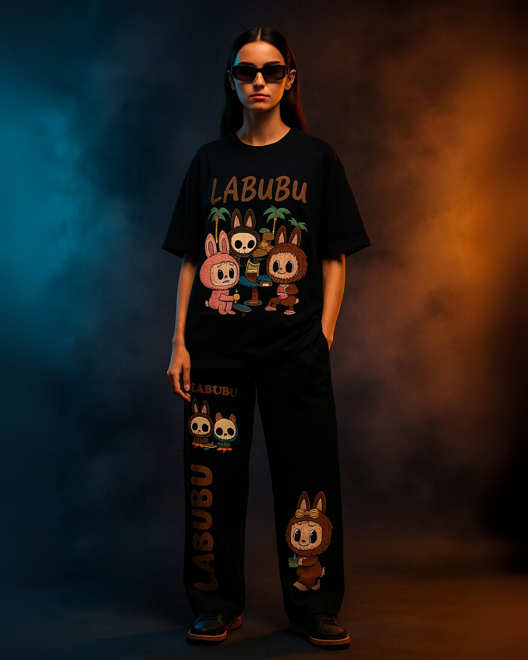 WOMEN BEACH VIBE LABUBU CORDSET (BLACK AND BLACK)