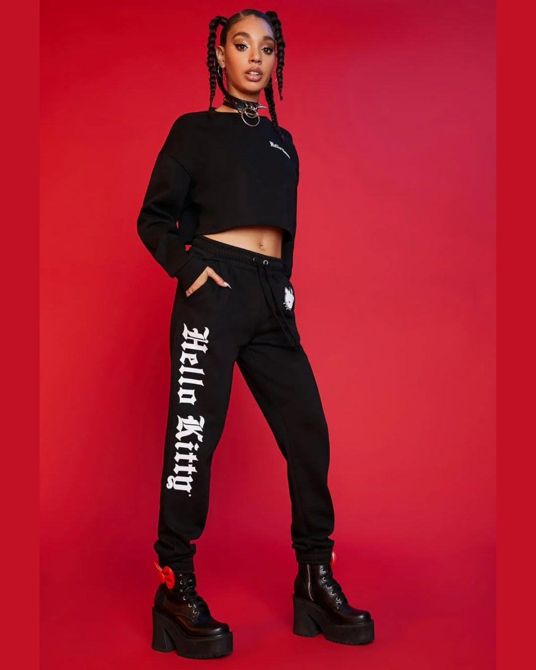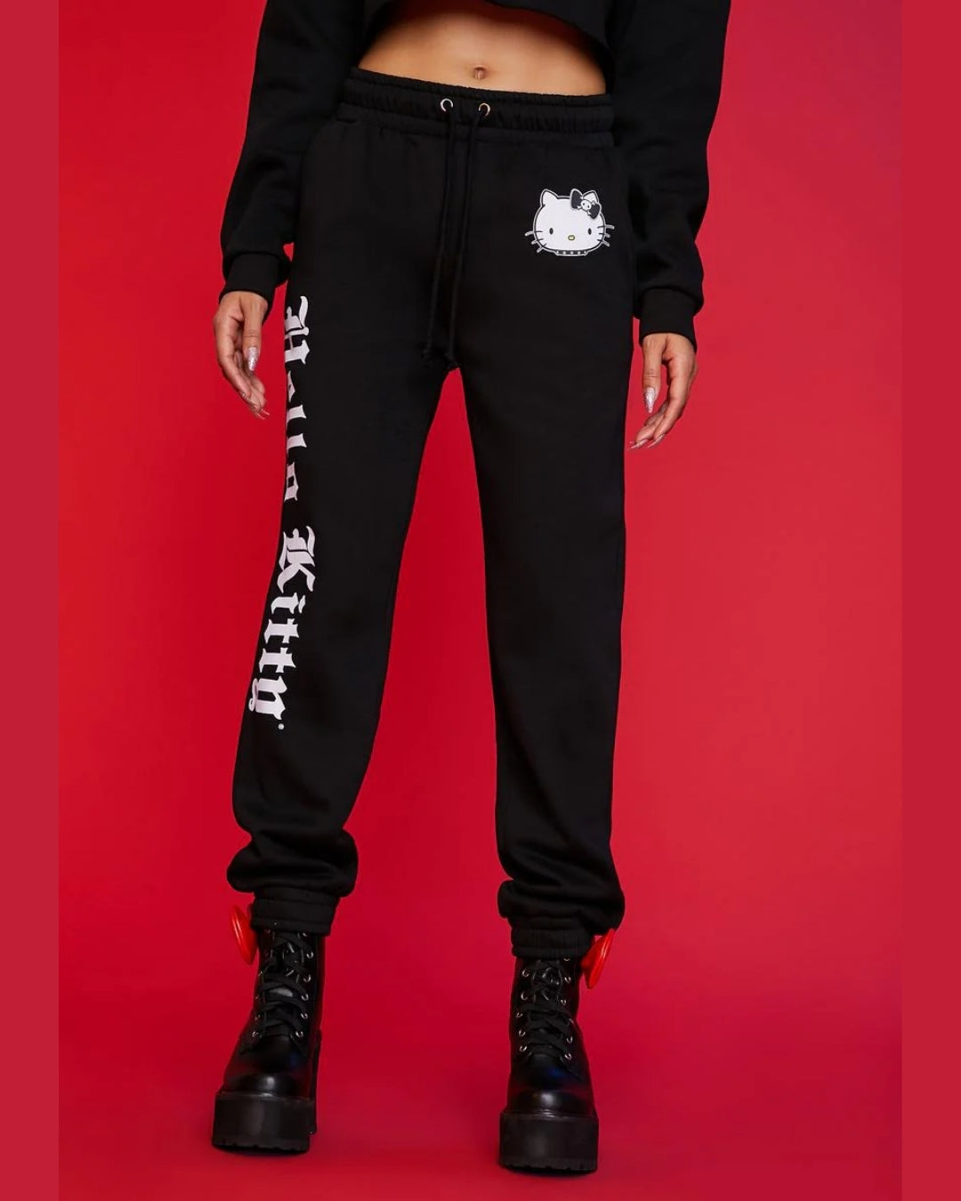 WOMEN'S BLACK COTTON PANT - HELLO KITTI